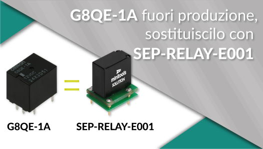 Minitools has the solution: the SEP-RELAY-E001 kit, composed by a relay and a specifically designed PCB to replace the G8QE-1A DC12 relay.