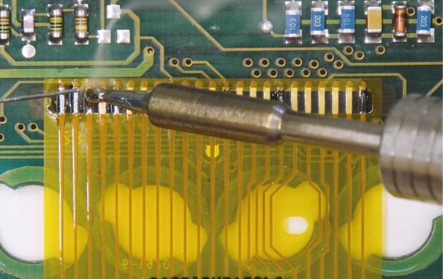 To properly solder the new display, add some solder wire on the contacts and remove any excess with the desoldering braid.